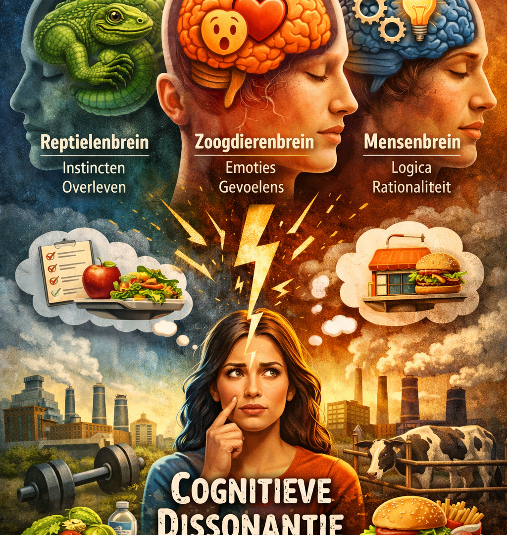 Een door AI gegenereerde afbeelding over het driebreinenmodel en cognitieve dissonantie.